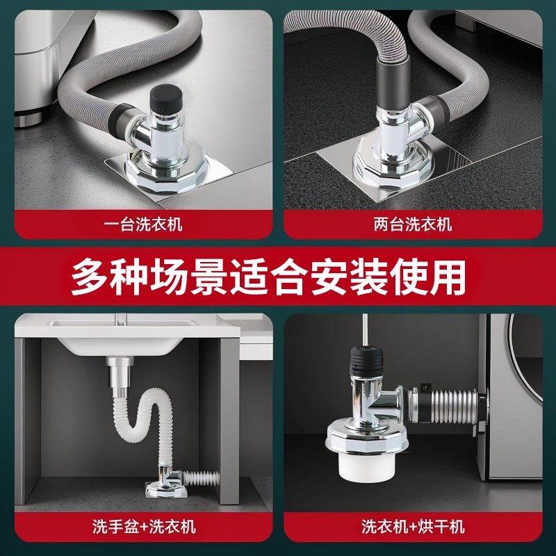 洗衣机下水管三头通地漏双排水专用接头排水管道二合一防臭防溢水