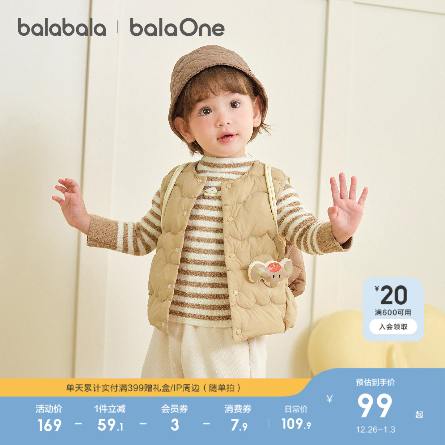 巴拉巴拉balaOne儿童羽绒马甲女童男童外套上衣新款童装2025秋冬