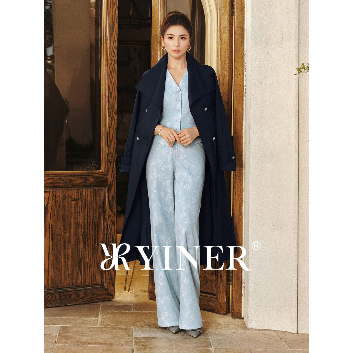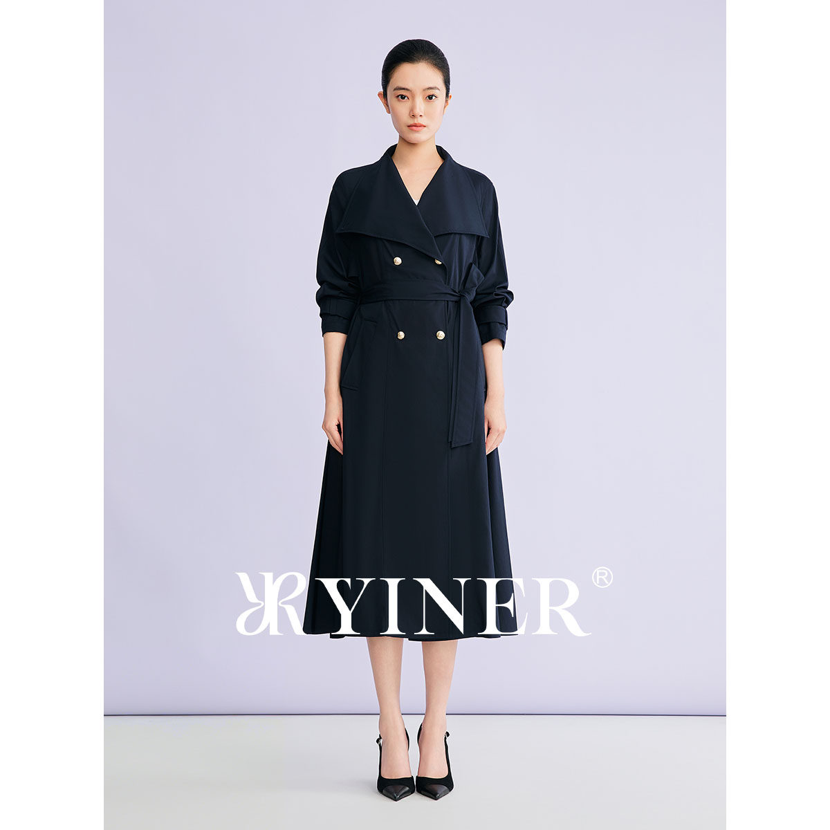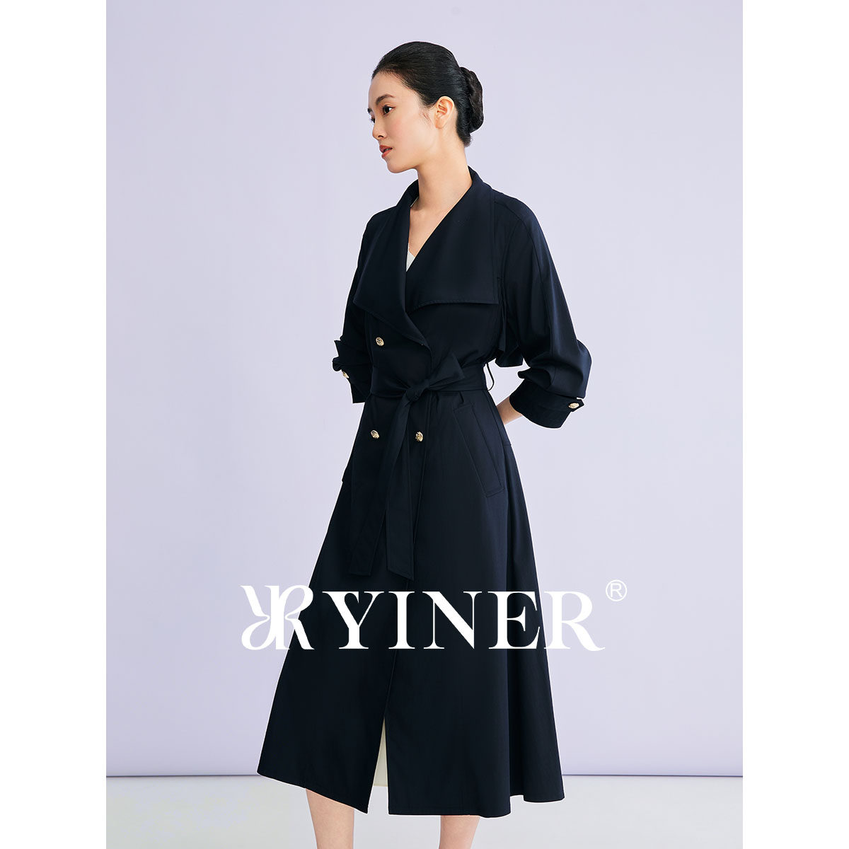 【刘涛同款】YINER音儿2026春季新款时尚大翻领廓形收腰风衣外套