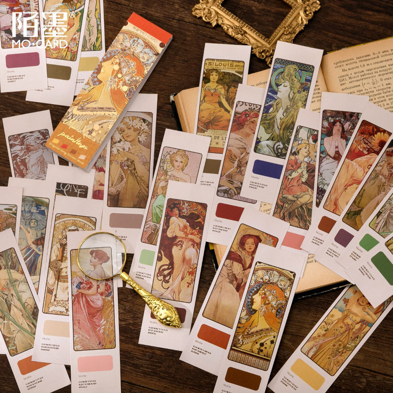 陌墨铜版纸模切长条贴纸本 一间美术馆系列 ins风手帐装饰素材贴
