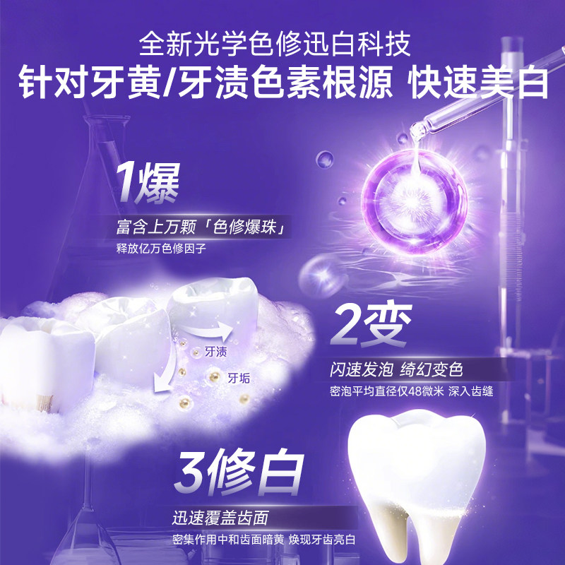 【肖战同款】舒客色修白牙膏美白冷光蓝紫色去黄清新口气旗舰正品