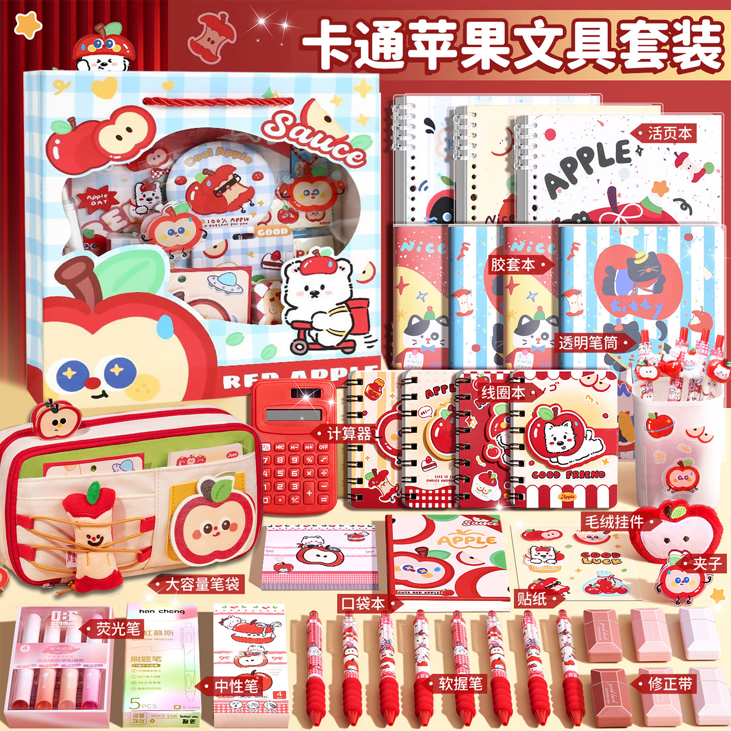 苹果多多文具套装礼盒男女生开学仪式感礼物学习用品生日礼物伴手礼高颜值卡通笔袋初中生一年级开学大礼包哦