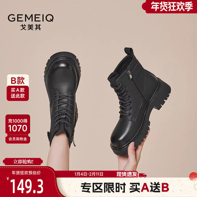 戈美其厚底马丁靴女款舒适春季新款短靴英伦风靴子百搭加绒女鞋子