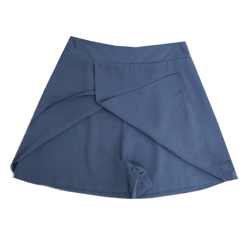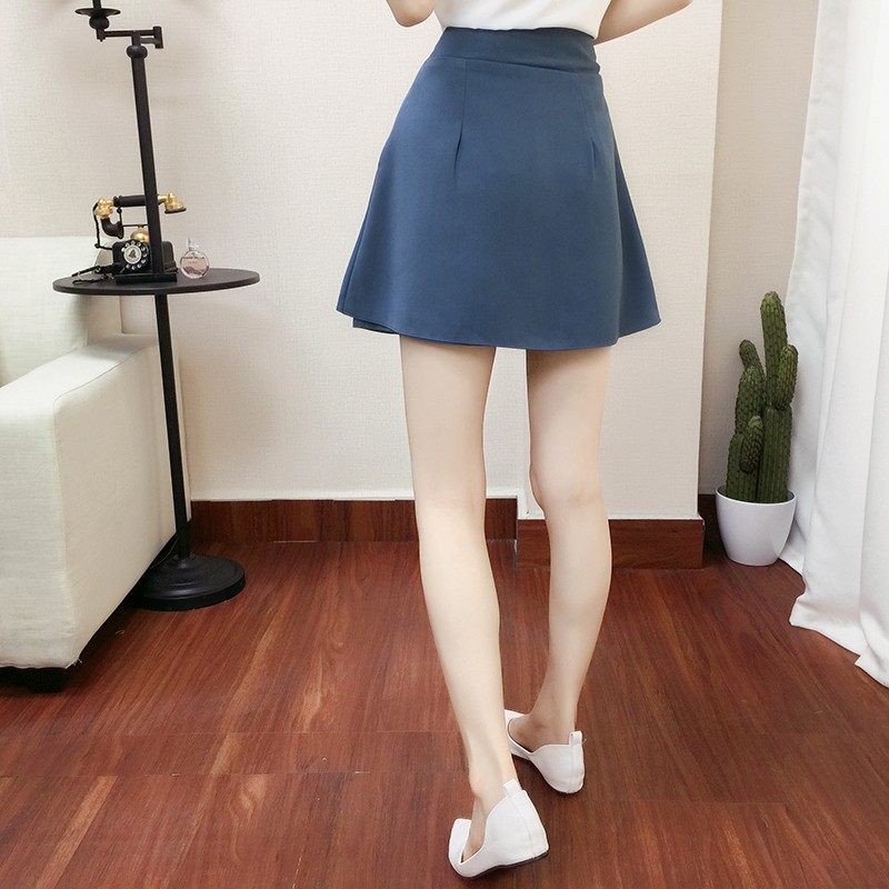 夏季女雪纺短裙裤大码高腰防走光a字裙不规则短裙纯色休闲半身裙