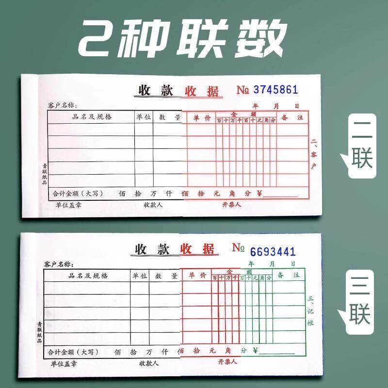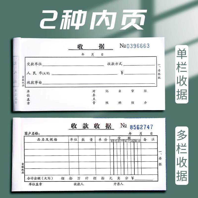 青联加厚二联三联收款无碳复写票据本送货单财务费用报销单多栏单栏20本现金收剧单据锯餐饮财会财务用品采购