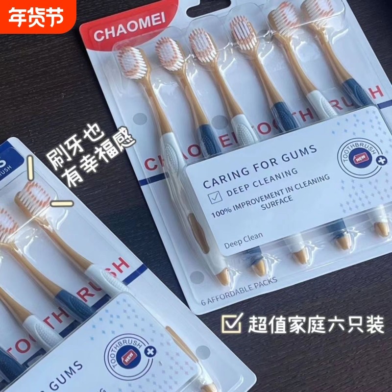 超软牙刷6支成人软毛宽头深层清洁口腔 密丝柔软高密家用
