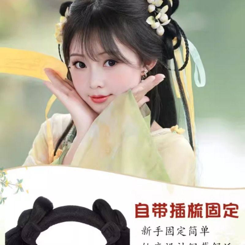 古风汉服假发髻盘发一体式发包古装明制唐风懒人造型垫发全套头饰