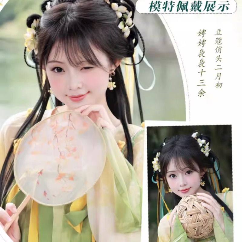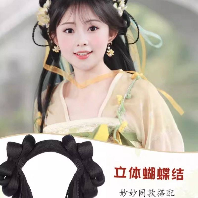 儿童汉服假发蝴蝶结发髻造型古装假发包女童汉服假发头饰假发古风