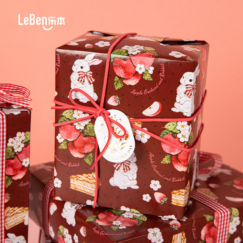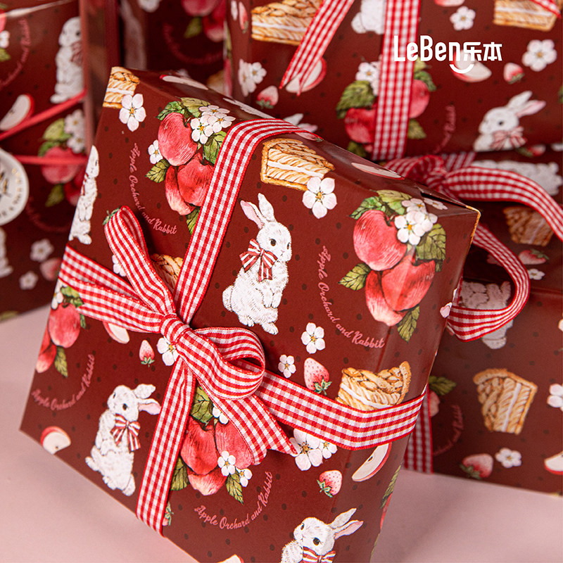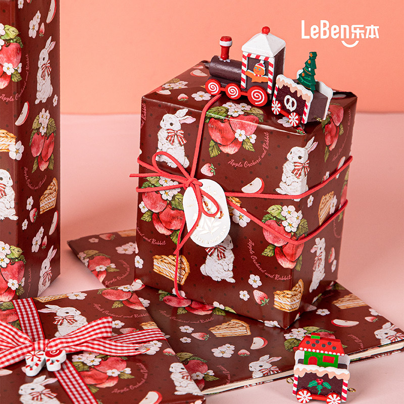 乐本·邦尼的苹果园圣诞包装纸卡通可爱礼物纸包书皮生日礼物包装材料丝带diy花束手账素材儿童打包纸大尺寸