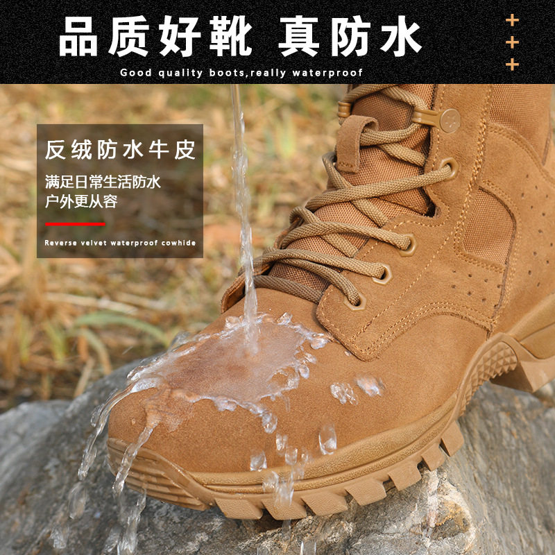 加绒作战靴男户外防水训练靴透气高帮防滑正品战术靴棕色牛皮耐磨