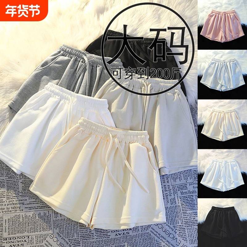 2025女士大码女装短裤显瘦白色休闲运动新款三分中腰灰色粉色黑色