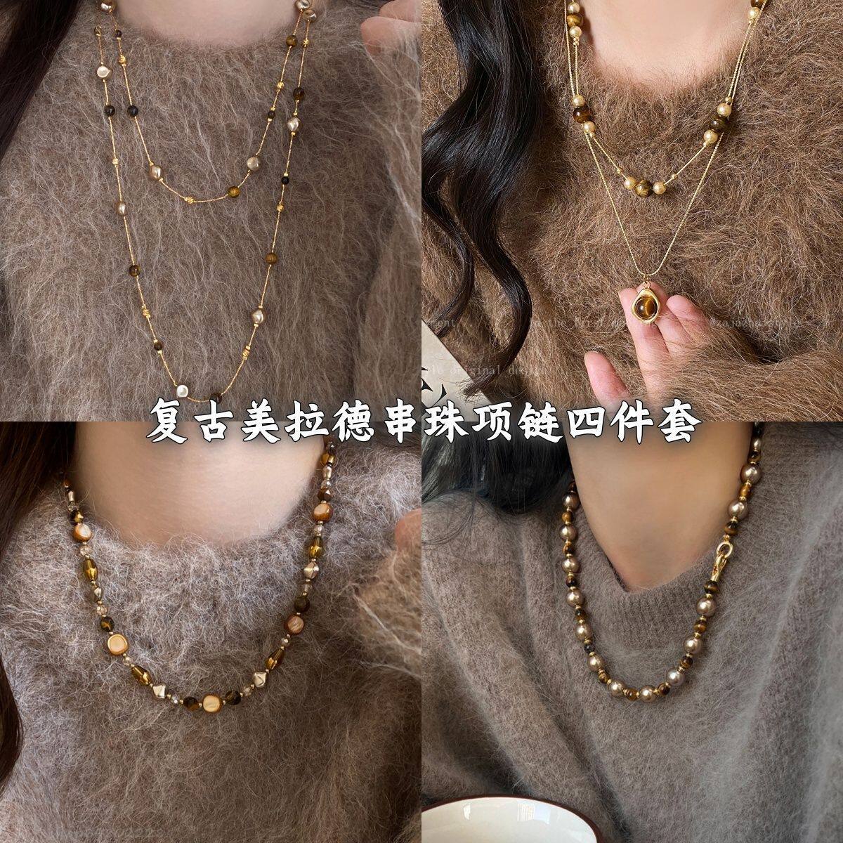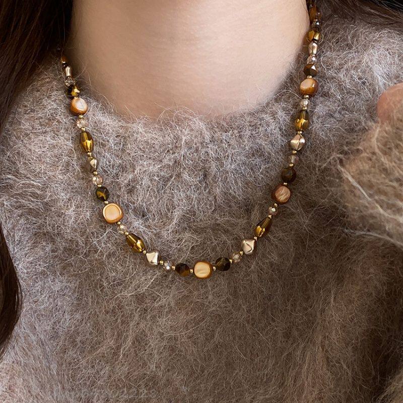 美拉德波西米亚叠戴毛衣项链女棕色复古穿搭choker锁骨链高级配饰