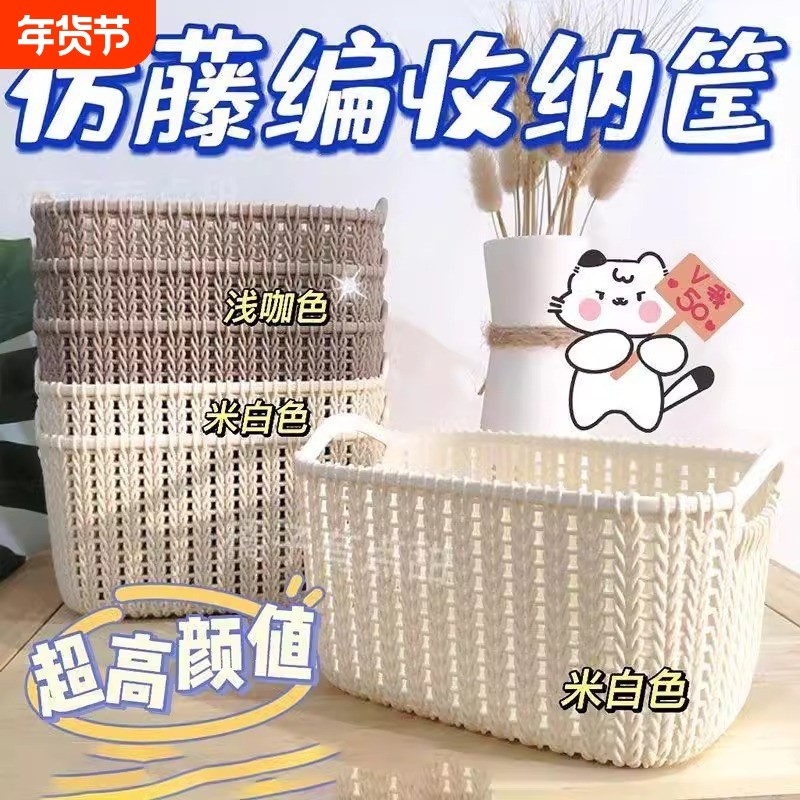 仿藤编桌面收纳篮家用玩具杂物置物篮塑料厨房收纳筐零食洗澡篮子