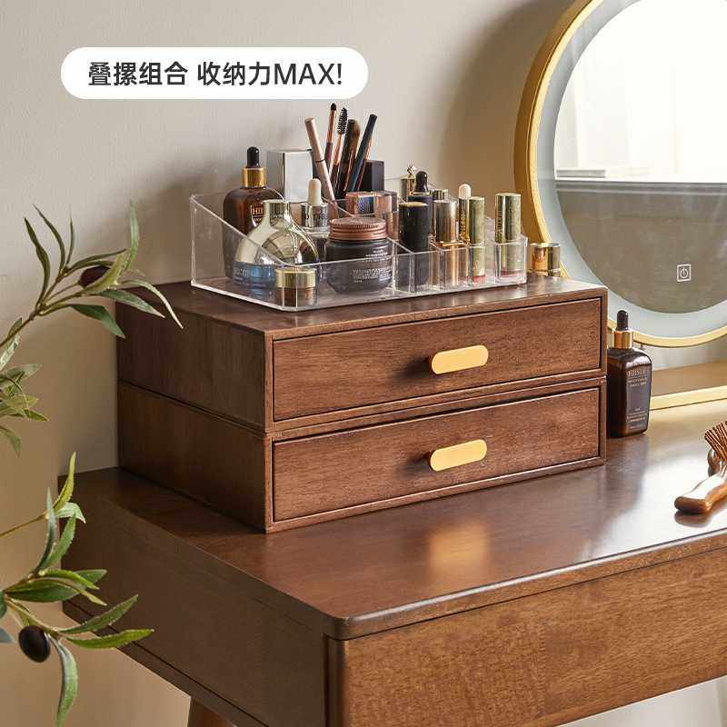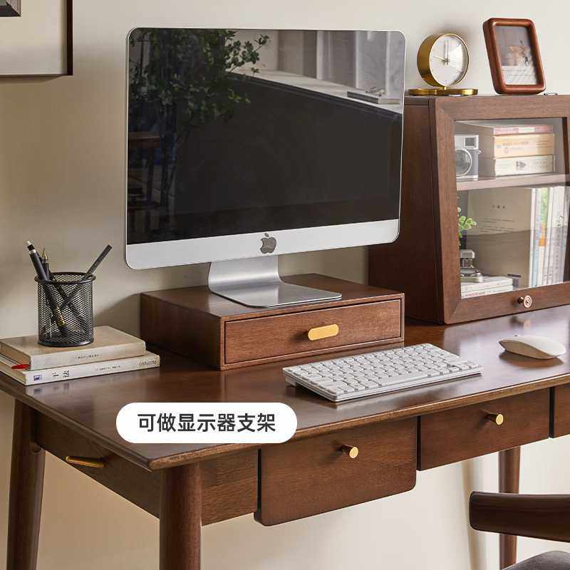 实木桌面多层抽屉式收纳盒家用办公桌杂物文件储物盒电脑增高架子