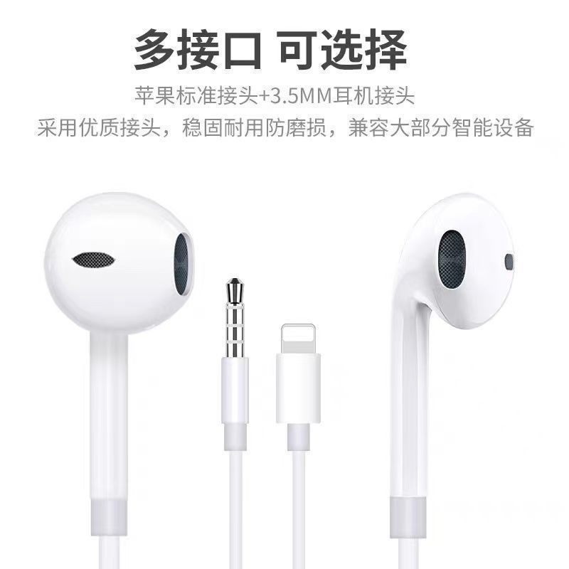 适用苹果耳机有线lightning扁头iPhone13/12/11通话语音吃鸡线控
