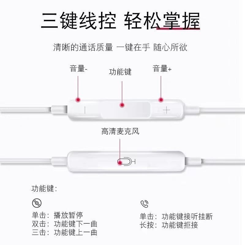 官方正品重低音耳机type-c接口有线入耳式隔音降噪高音质耳塞圆口