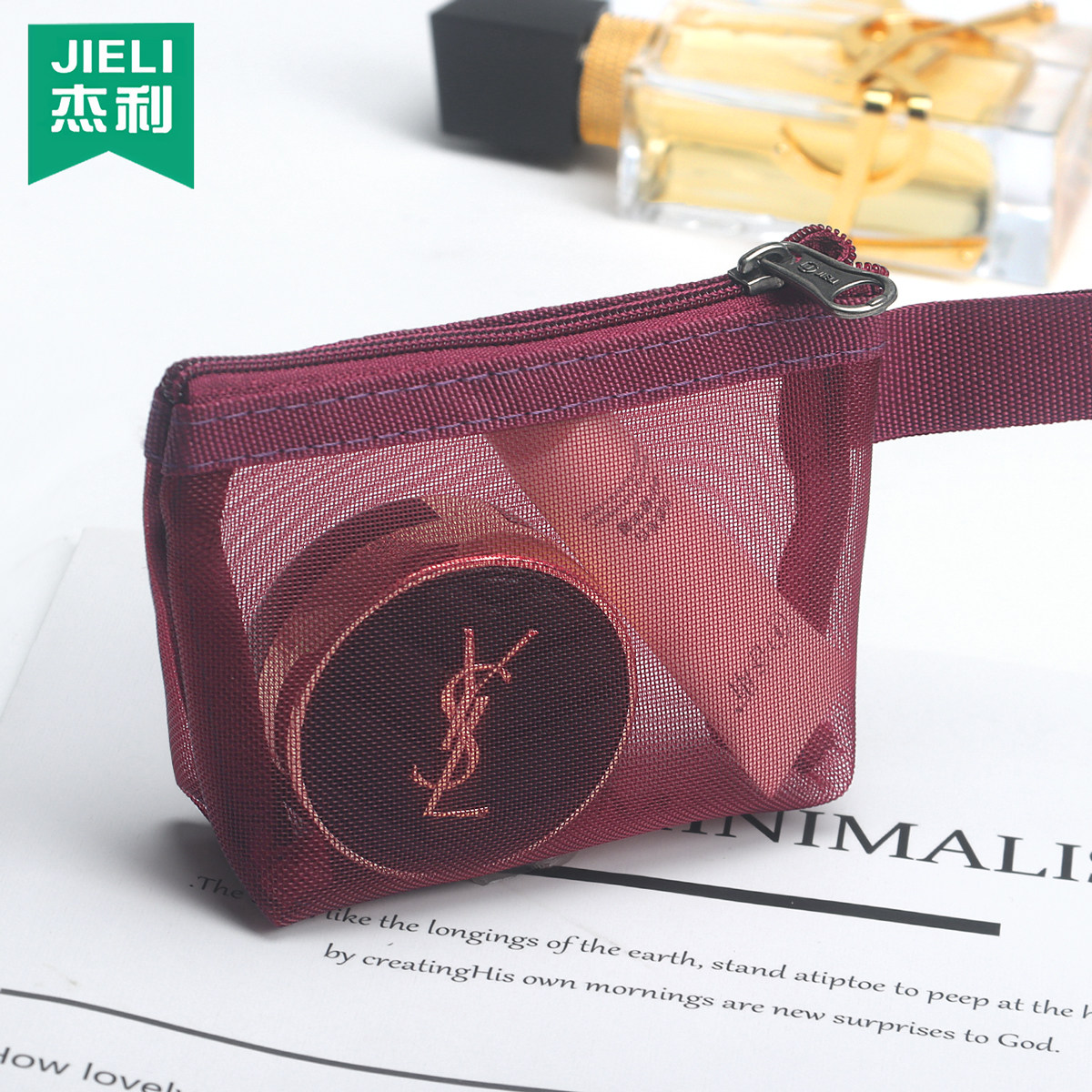 杰利迷你网纱收纳袋便携零钱包学生简约尼龙拉链袋女生高颜值收纳小袋口红银行卡包身份证钥匙包充电线耳机袋