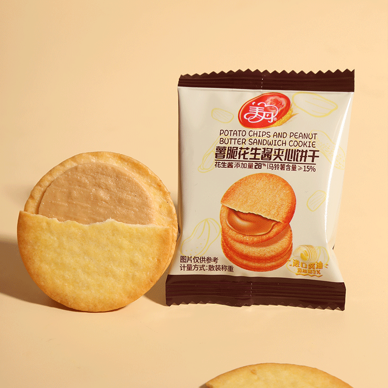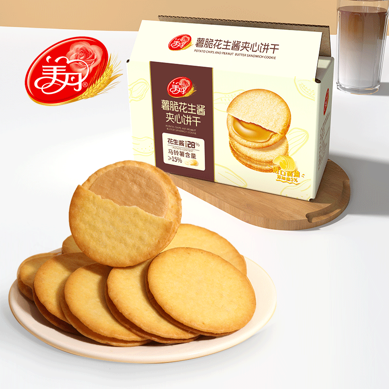 美丹薯脆薄饼干花生酱夹心黑蒜味整箱下午茶零食薄脆饼干超市正品