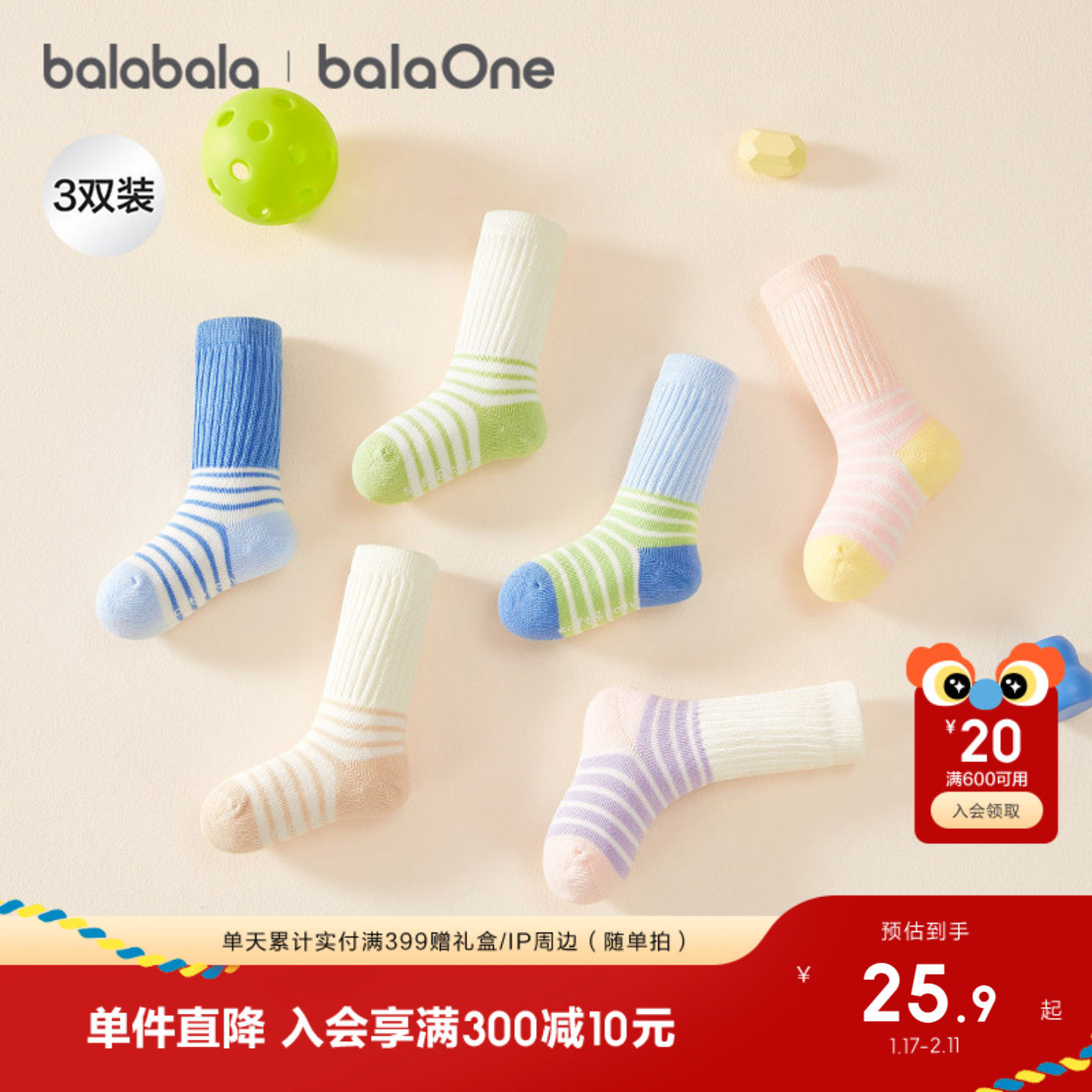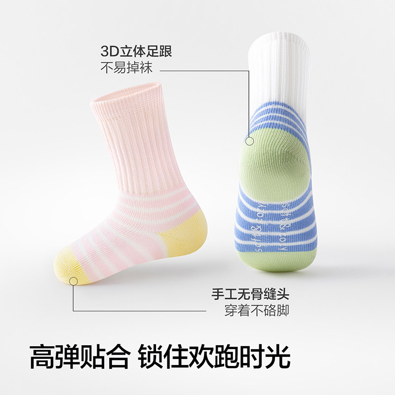 【balaOne】巴拉巴拉儿童袜子春秋男女童棉袜条纹中筒袜萌三双装