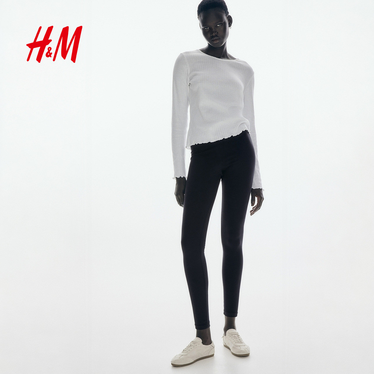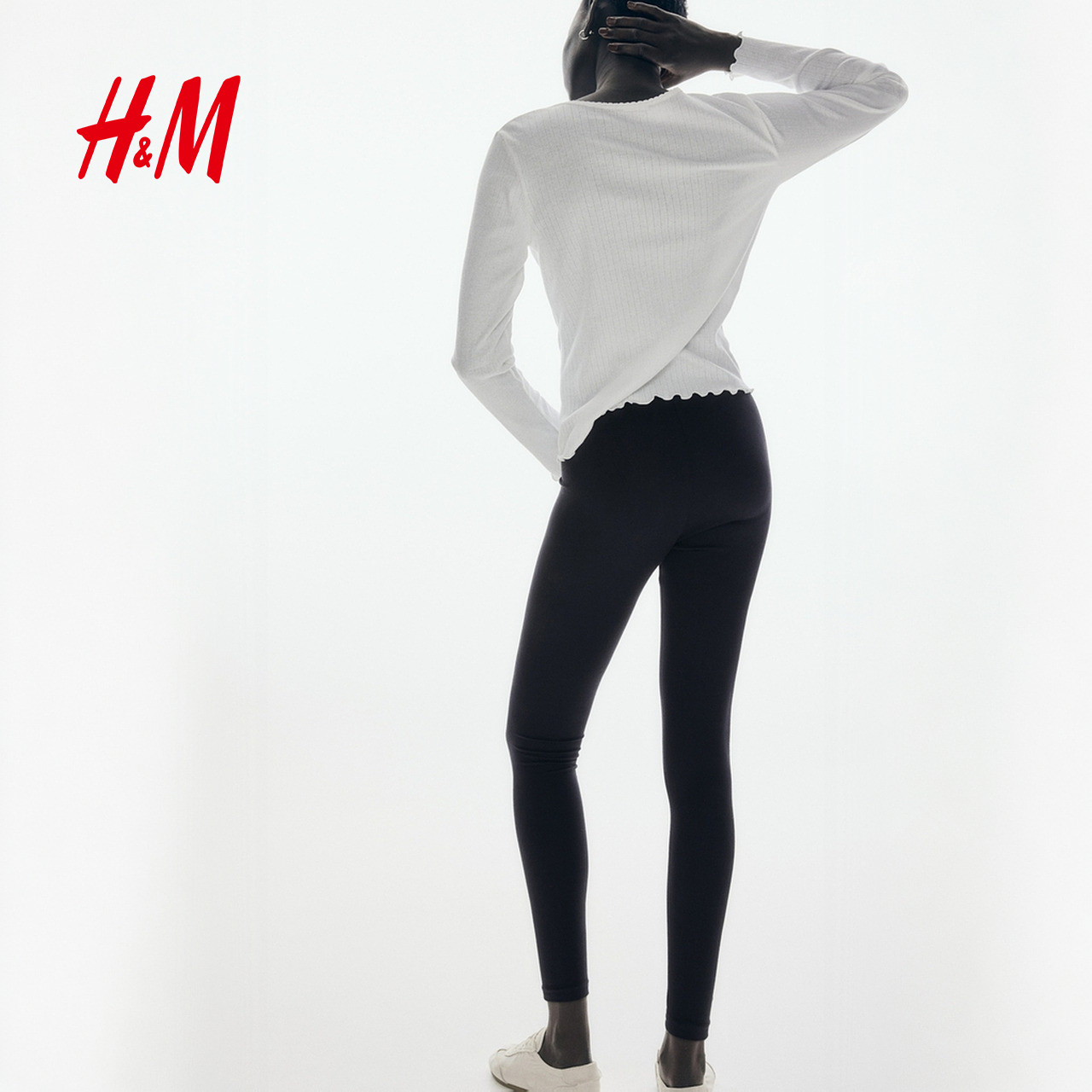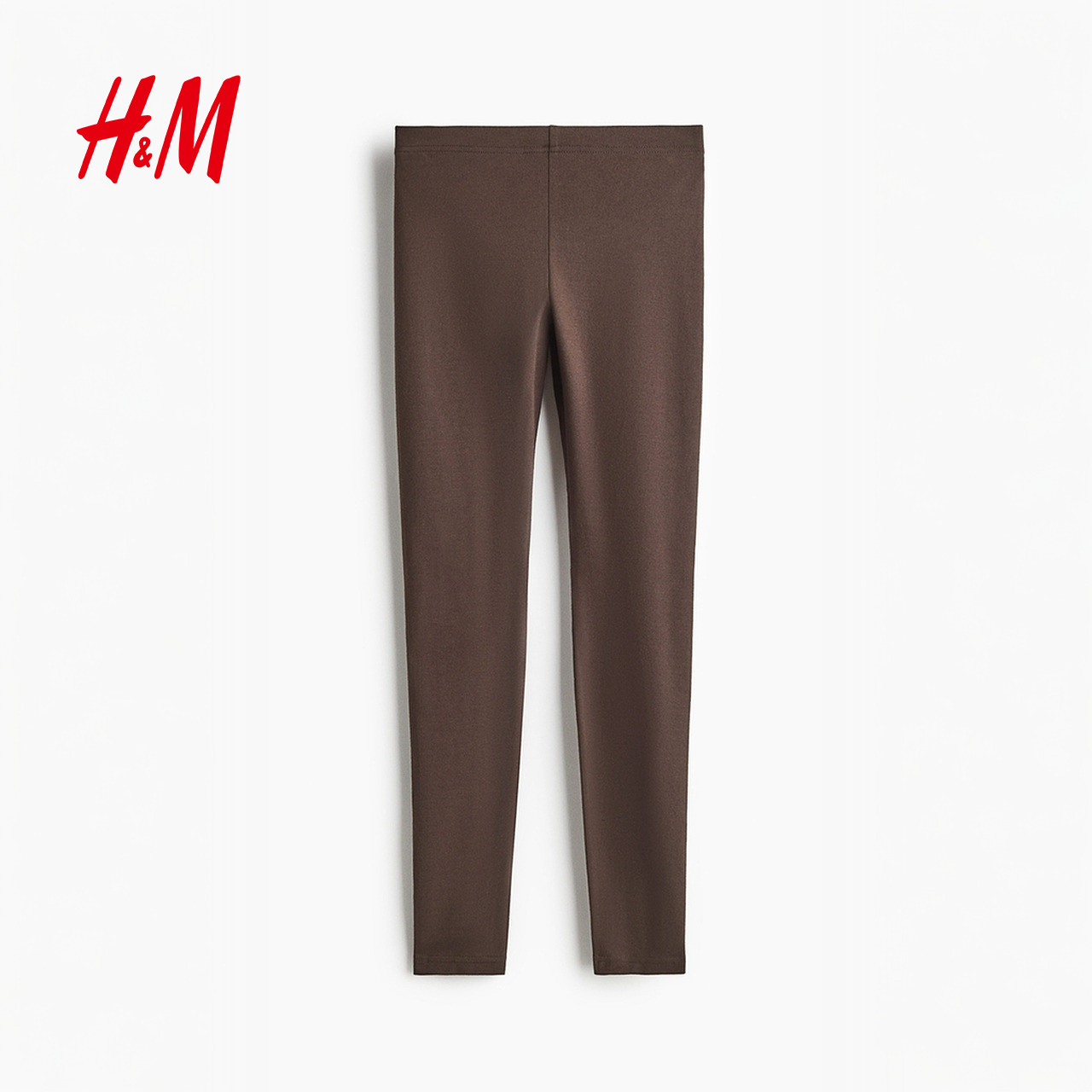 HM女装裤子2025冬季新款棉质修身保暖长裤内搭休闲打底裤1297155