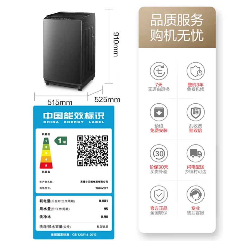 以旧换新小天鹅8/10/12kg家用小型波轮洗衣机全自动洗脱一体机