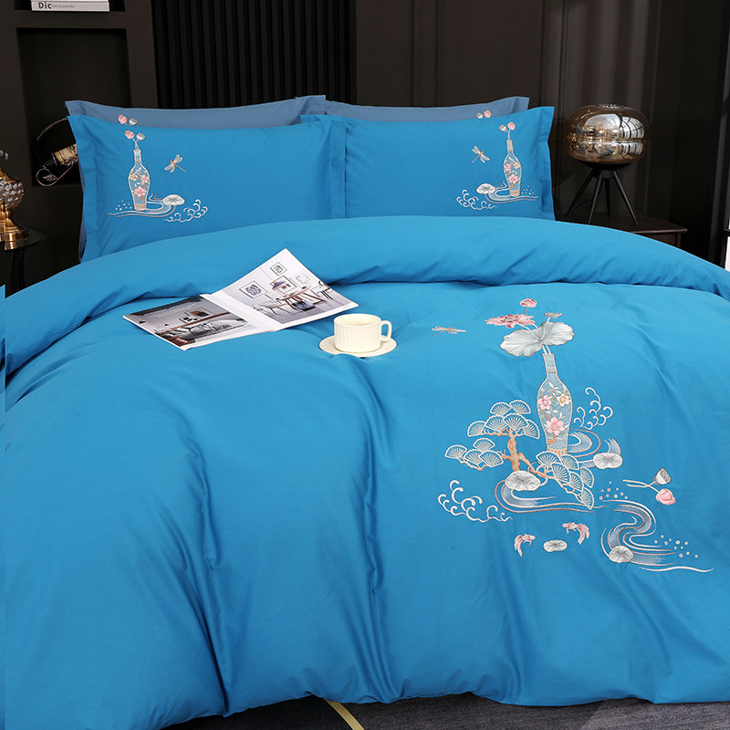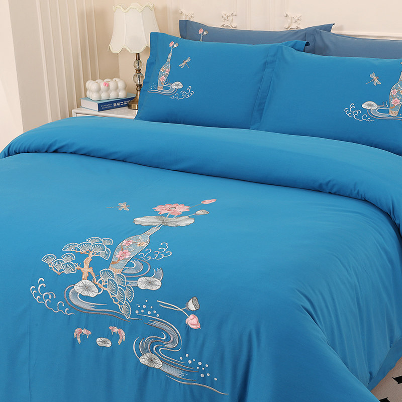 四季款全棉纯棉高端绣花四件套中式刺绣被套床单花卉古典风套件