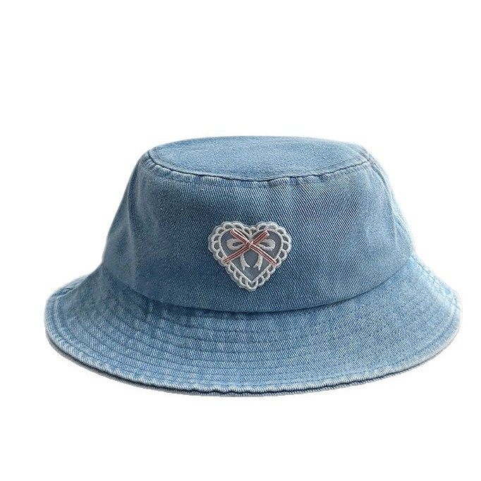 【LH】小清新韩系盆帽甜美爱心儿童牛仔渔夫帽女宝宝户外防晒遮阳