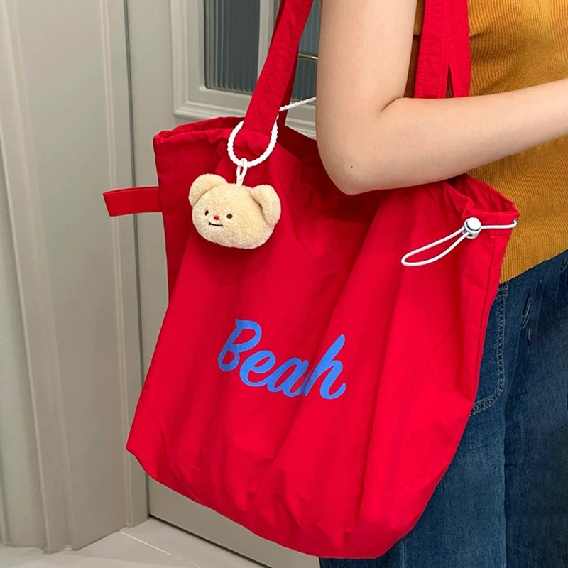 日系轻便ins风单肩包包女红色学生党通勤托特包帆布袋斜挎蓝色
