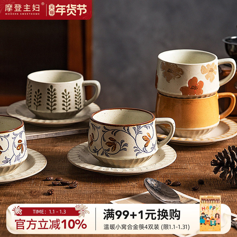 摩登主妇陶瓷咖啡杯套装马克杯子高档精致家用水杯早餐杯乔迁礼物
