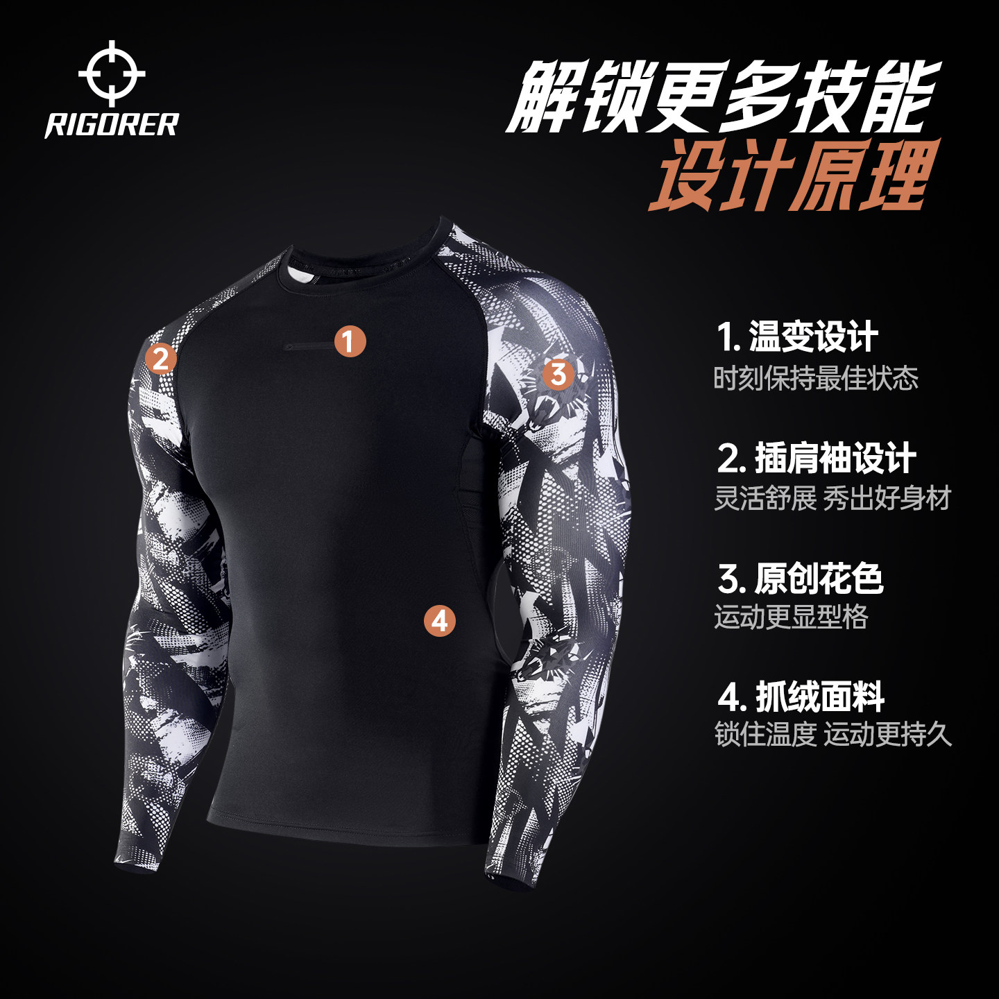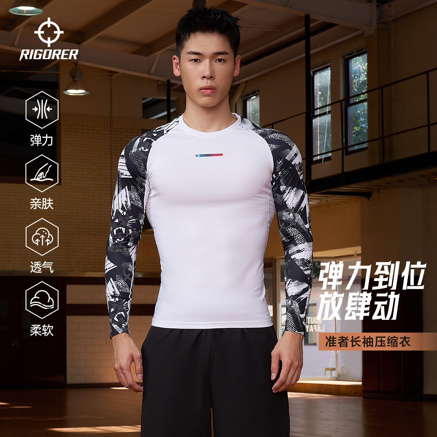 准者磨毛紧身衣男秋冬跑步训练健身服篮球运动上衣高弹速干压缩衣