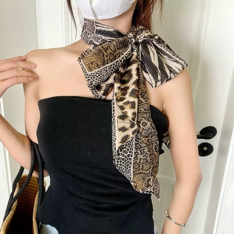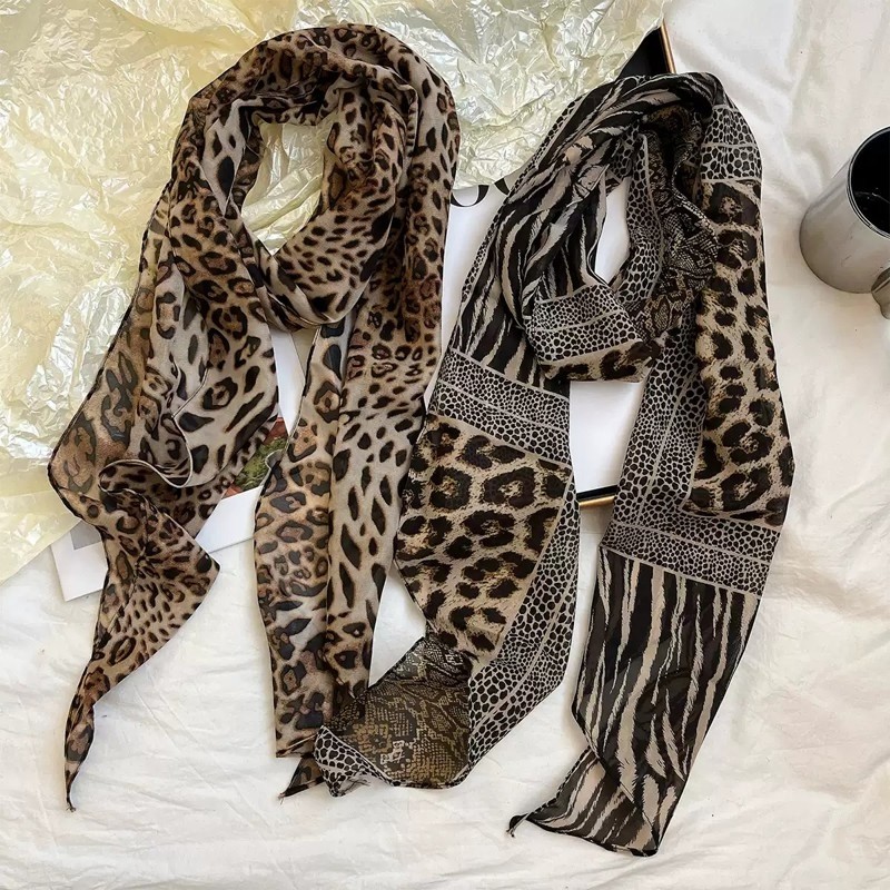 美式复古辣妹豹纹丝巾女春秋薄款百搭小众设计千禧风长条领巾围巾
