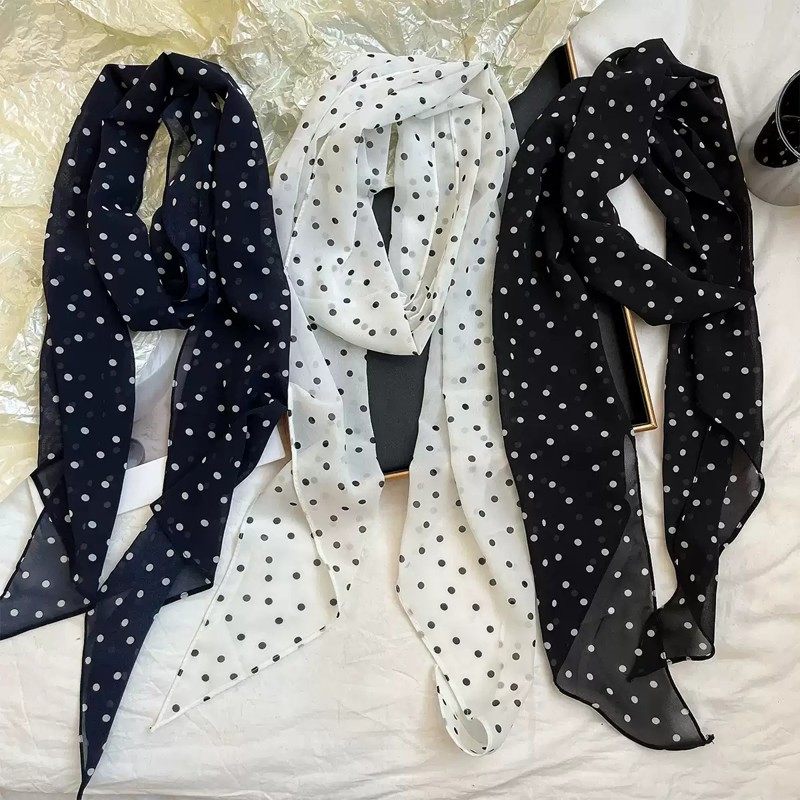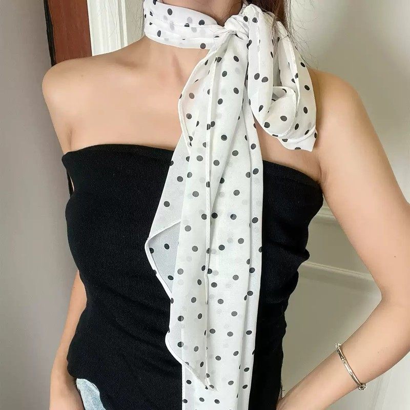 2024新款四季百搭长条小丝巾女薄款洋气高级黑白围脖领巾韩式围巾