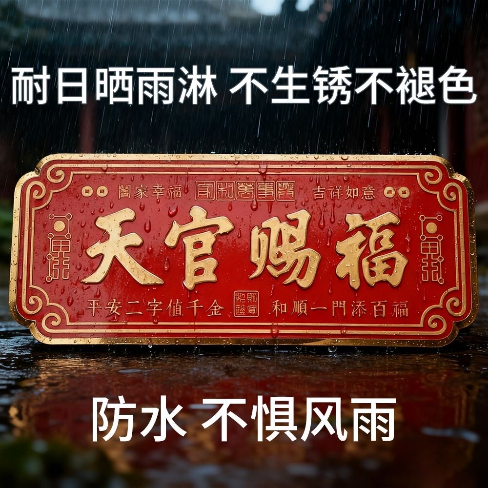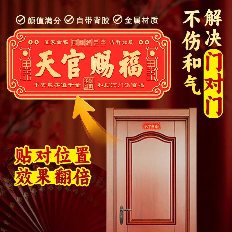 天官赐福门贴2026新款入户铜牌装饰门纸门牌匾金属浮雕乔迁对门