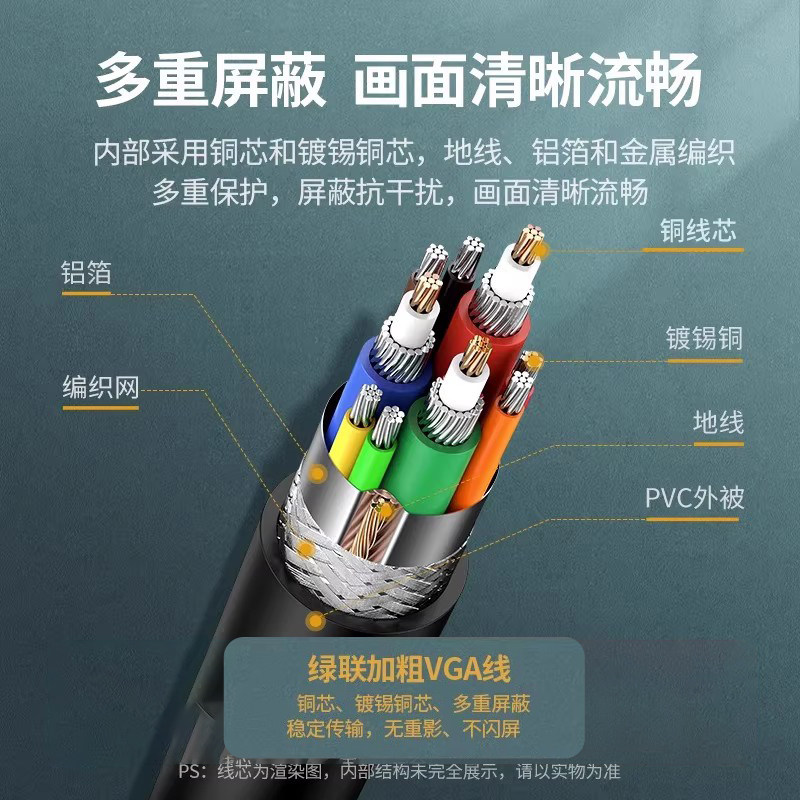 绿联vga线3米台式电脑显示器与主机连接线高清延长数据传输转视频