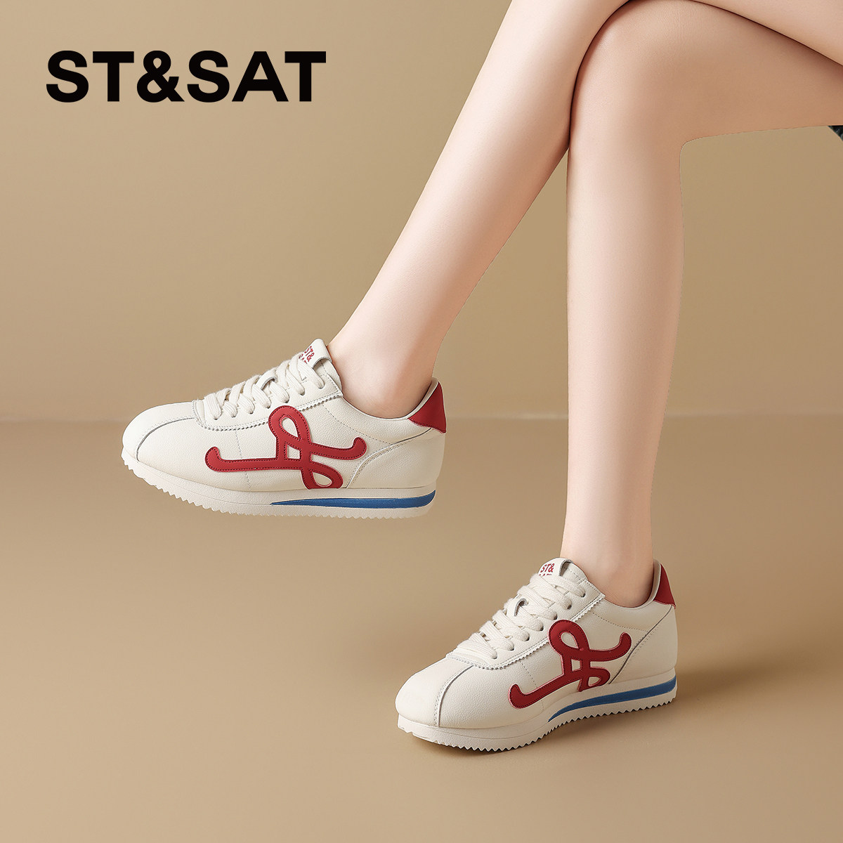 骆驼月牙德训鞋女鞋2026春季新款运动鞋女红色板鞋复古休闲芭蕾鞋