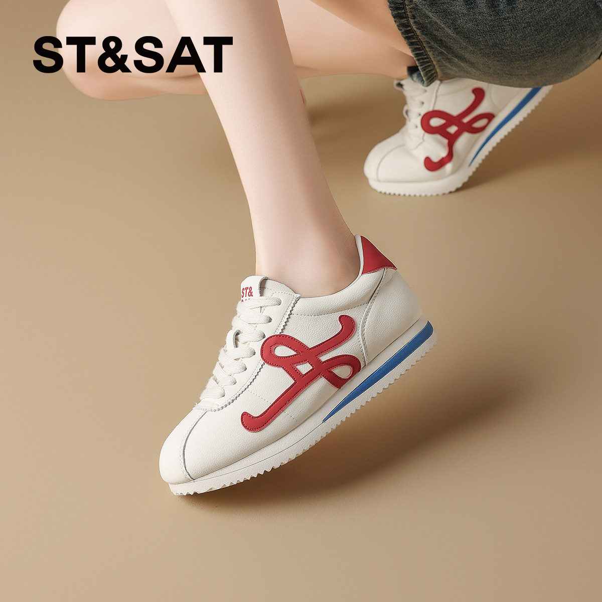 真皮厚底德训鞋女款2026新款春季红色鞋子增高百搭休闲板鞋运动鞋