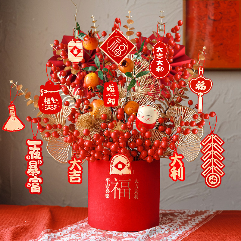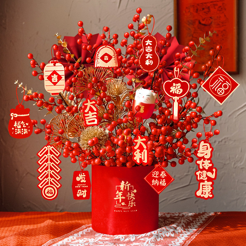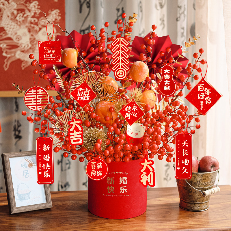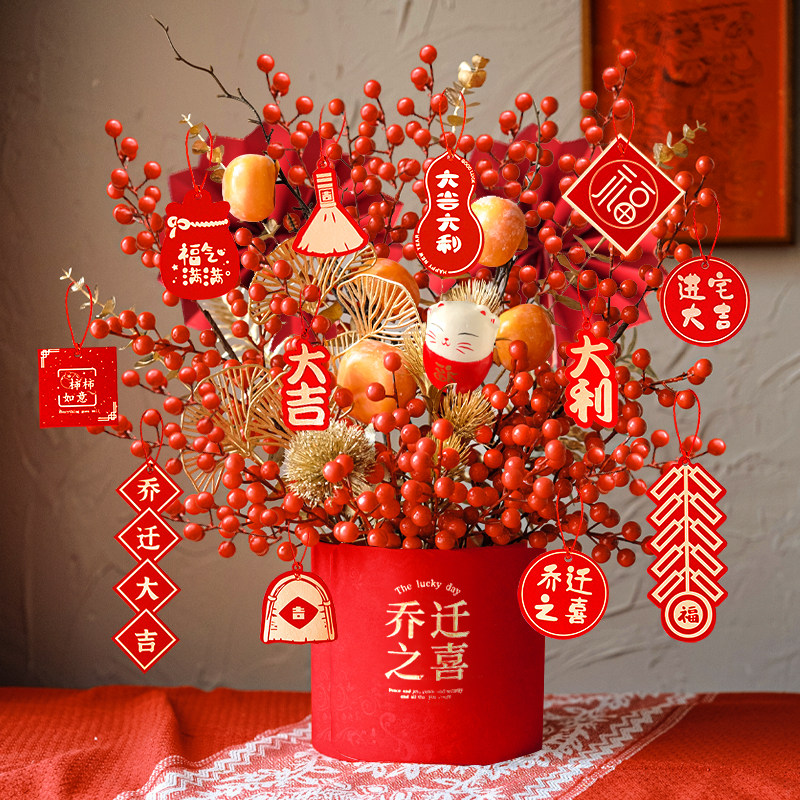 乔迁花束新居发财果春节福桶结婚客厅装饰摆件仿真花插花新婚礼物
