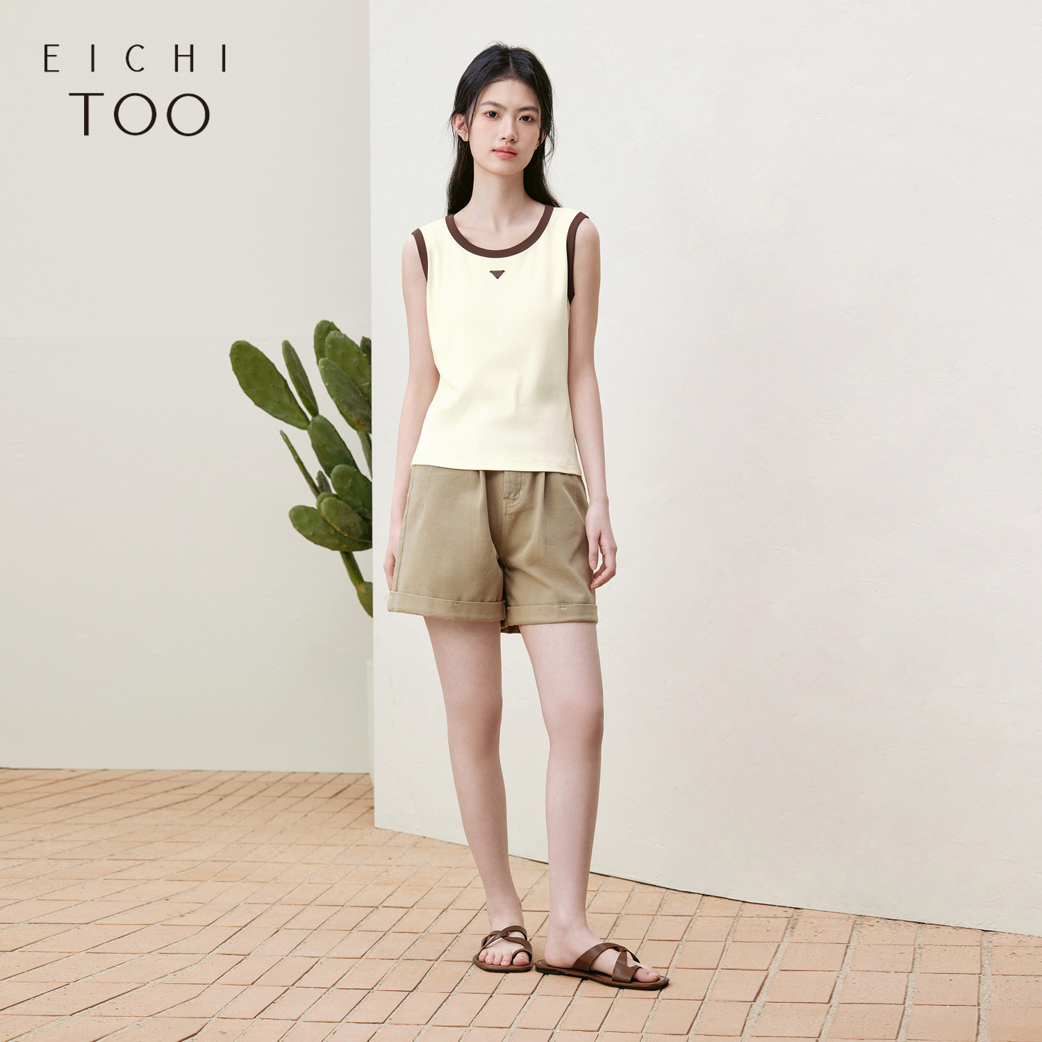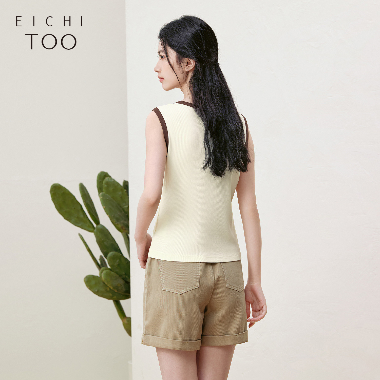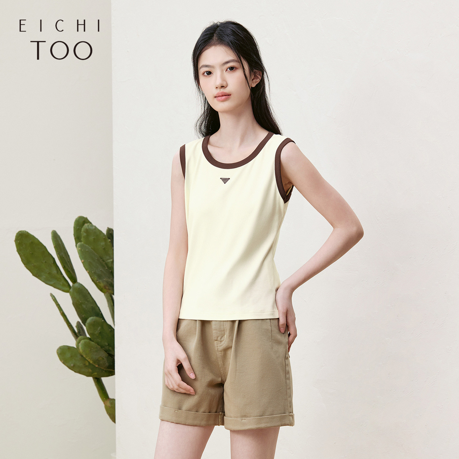 爱居兔时尚撞色背心女夏季新款修身舒适百搭叠穿无袖T恤
