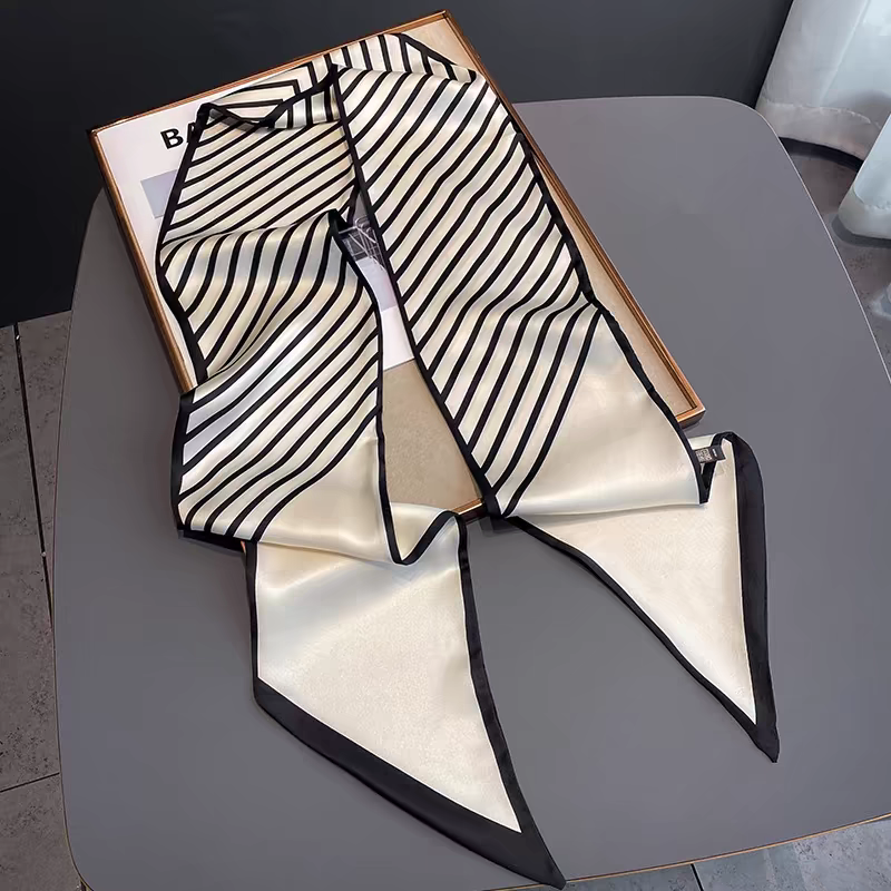 2024新款四季百搭长条小丝巾女薄款洋气高级黑白围脖领巾韩式围巾