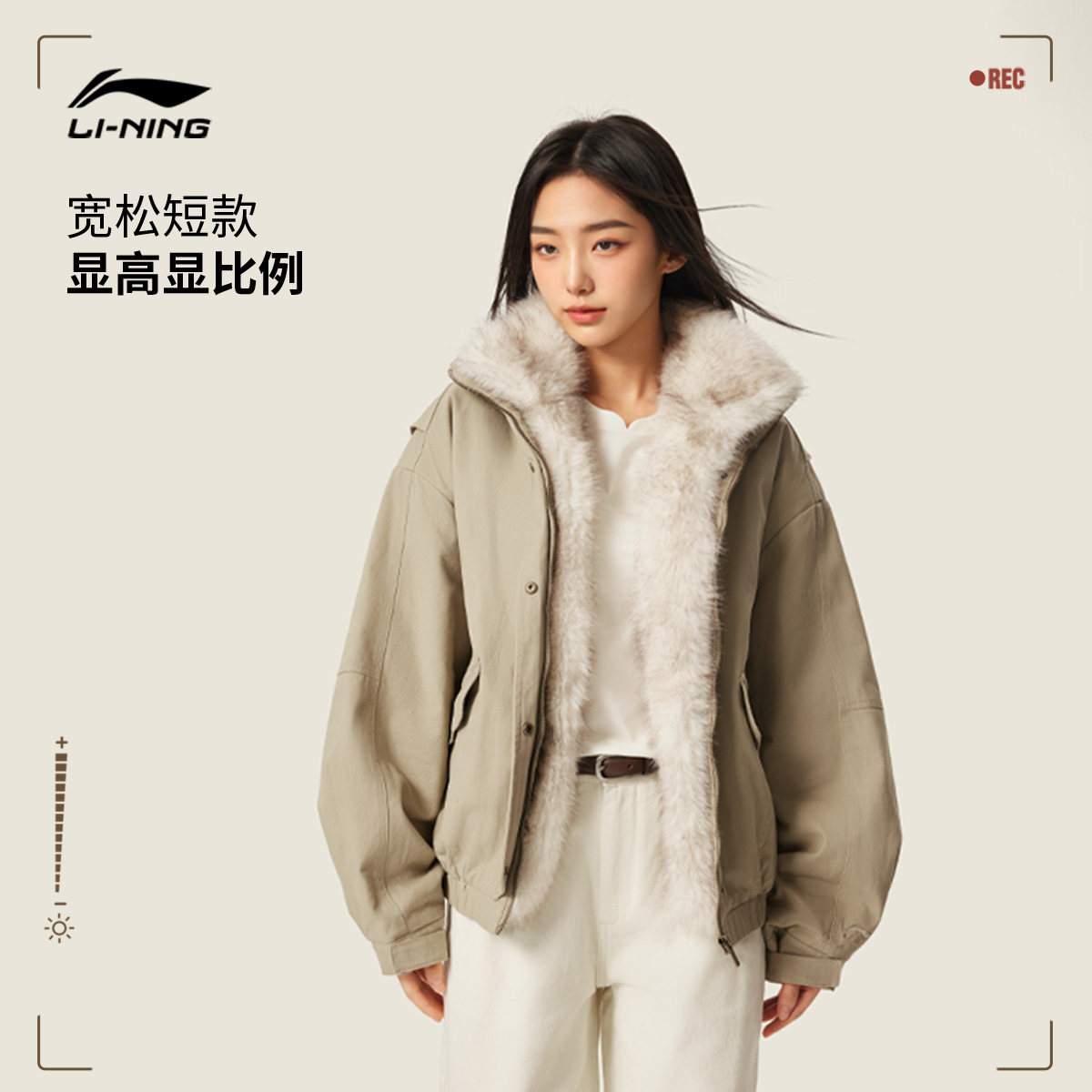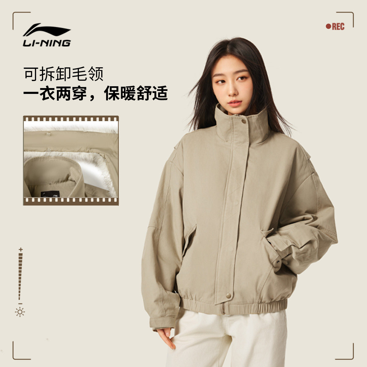 李宁棉服女秋冬官方新款短款外套加厚保暖谷仓夹克立领宽松运动服