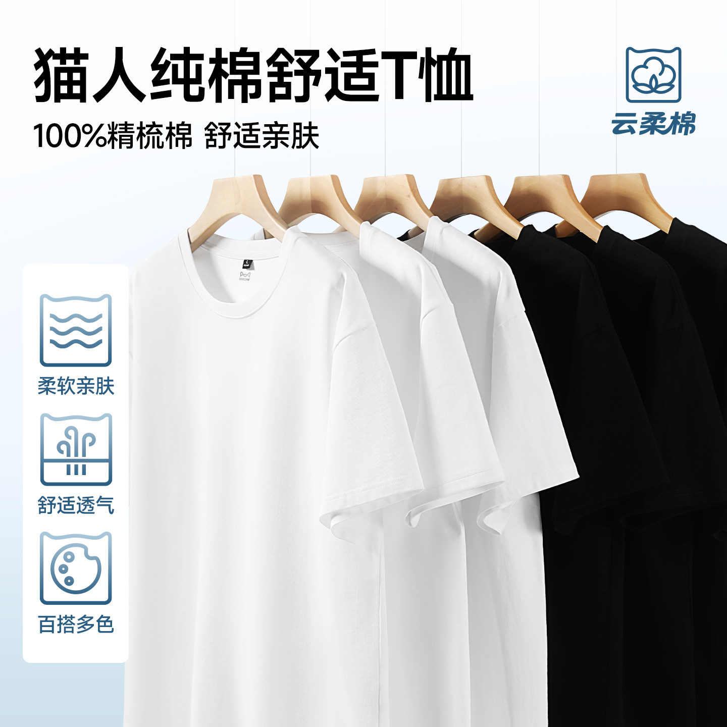 猫人男士休闲套装夏季纯棉短袖t恤大码男裤2026新款宽松上衣裤子J