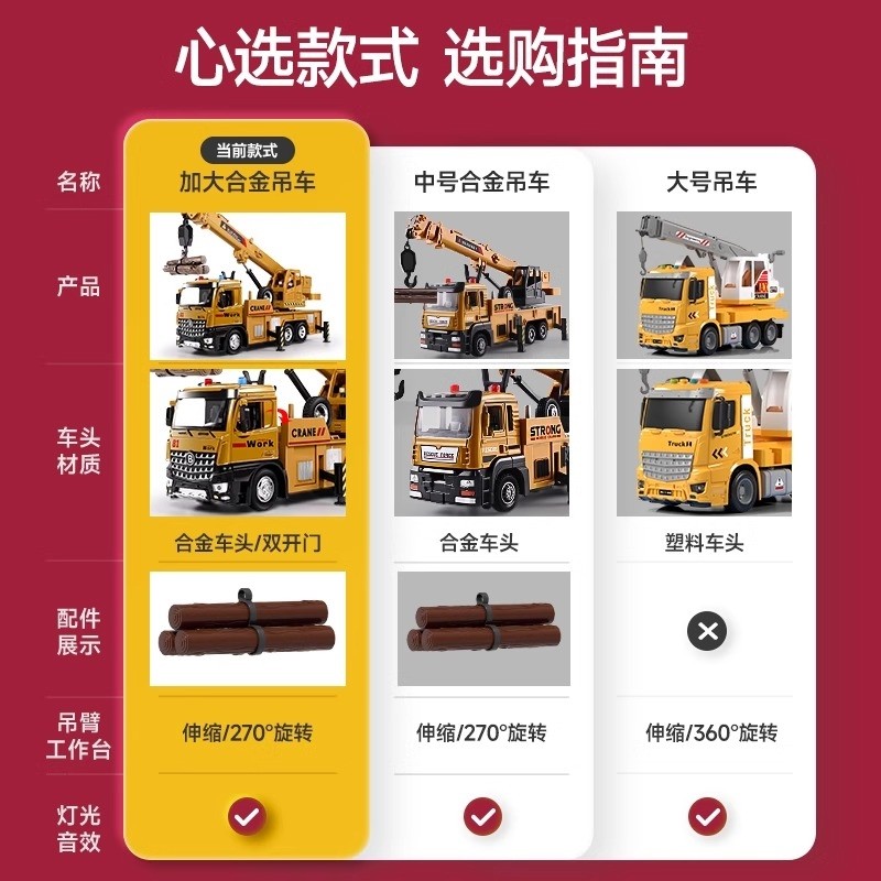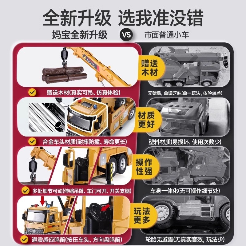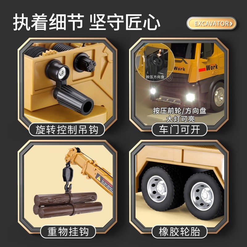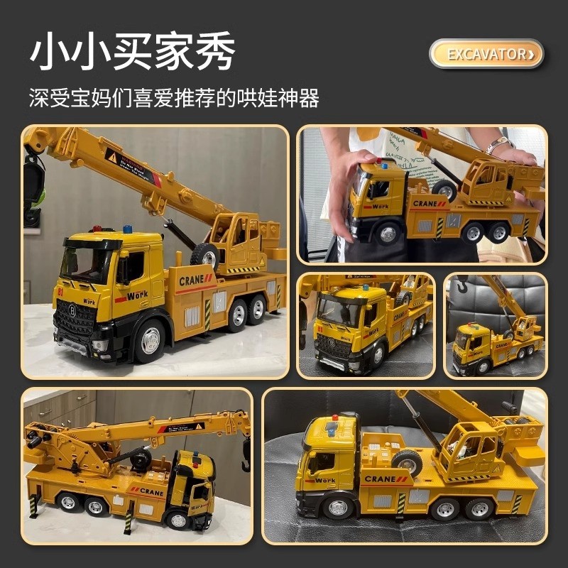 超大号吊车儿童玩具套装男工程车挖掘机起重机合金模型吊机车消防
