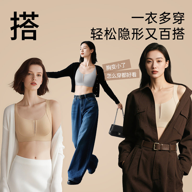 【胡可推荐】润微提拉内衣女大胸显小防下垂粉底液收副乳调整文胸