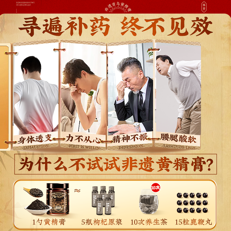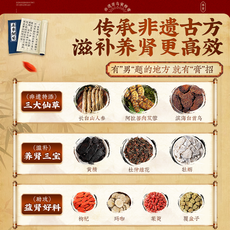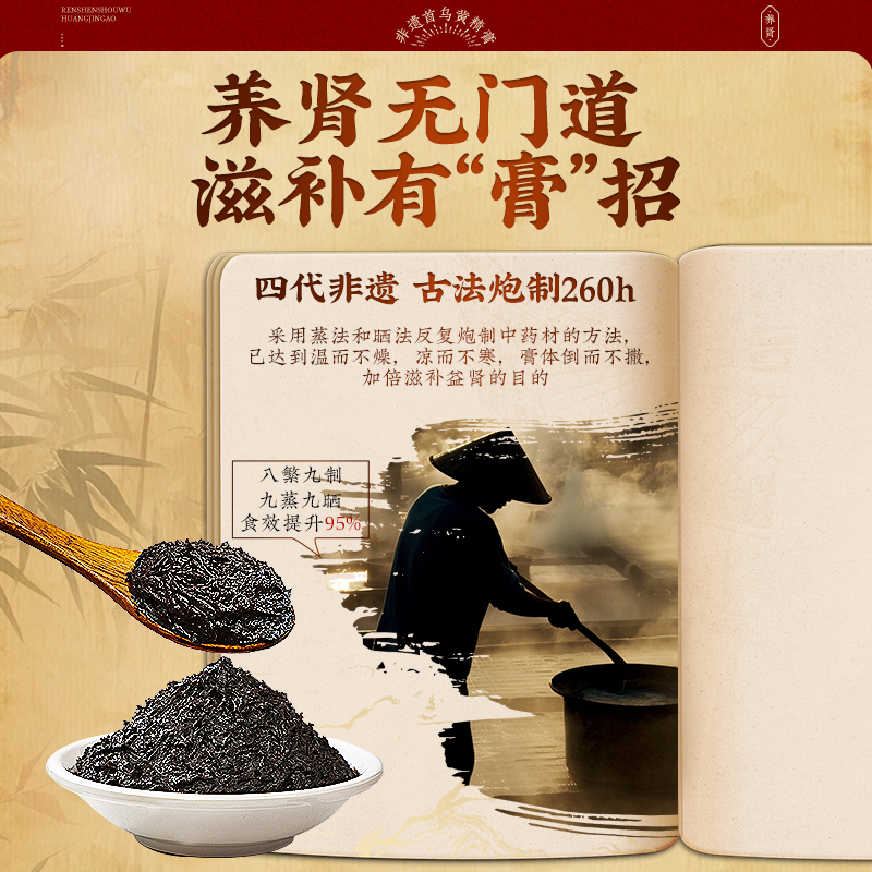 非遗人参黄精膏九蒸九制补男人精强肾首乌固本培元滋补养生膏正品