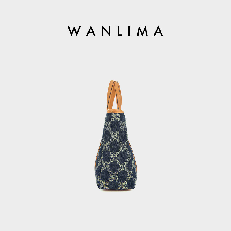 万里马丹宁牛仔老花托特包女大容量通勤斜挎单肩手提包复古水桶包
