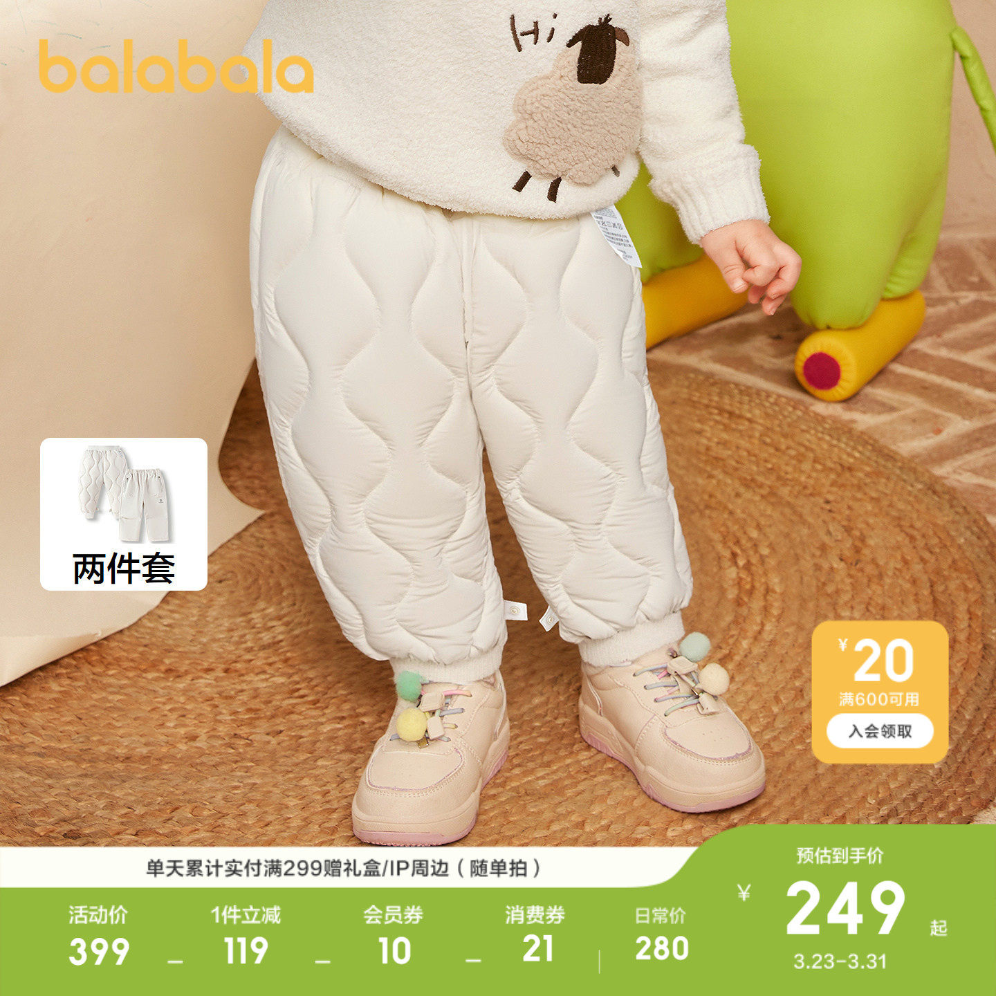 【商场同款】巴拉巴拉宝宝长裤男女儿童羽绒裤冬季新款两件套
