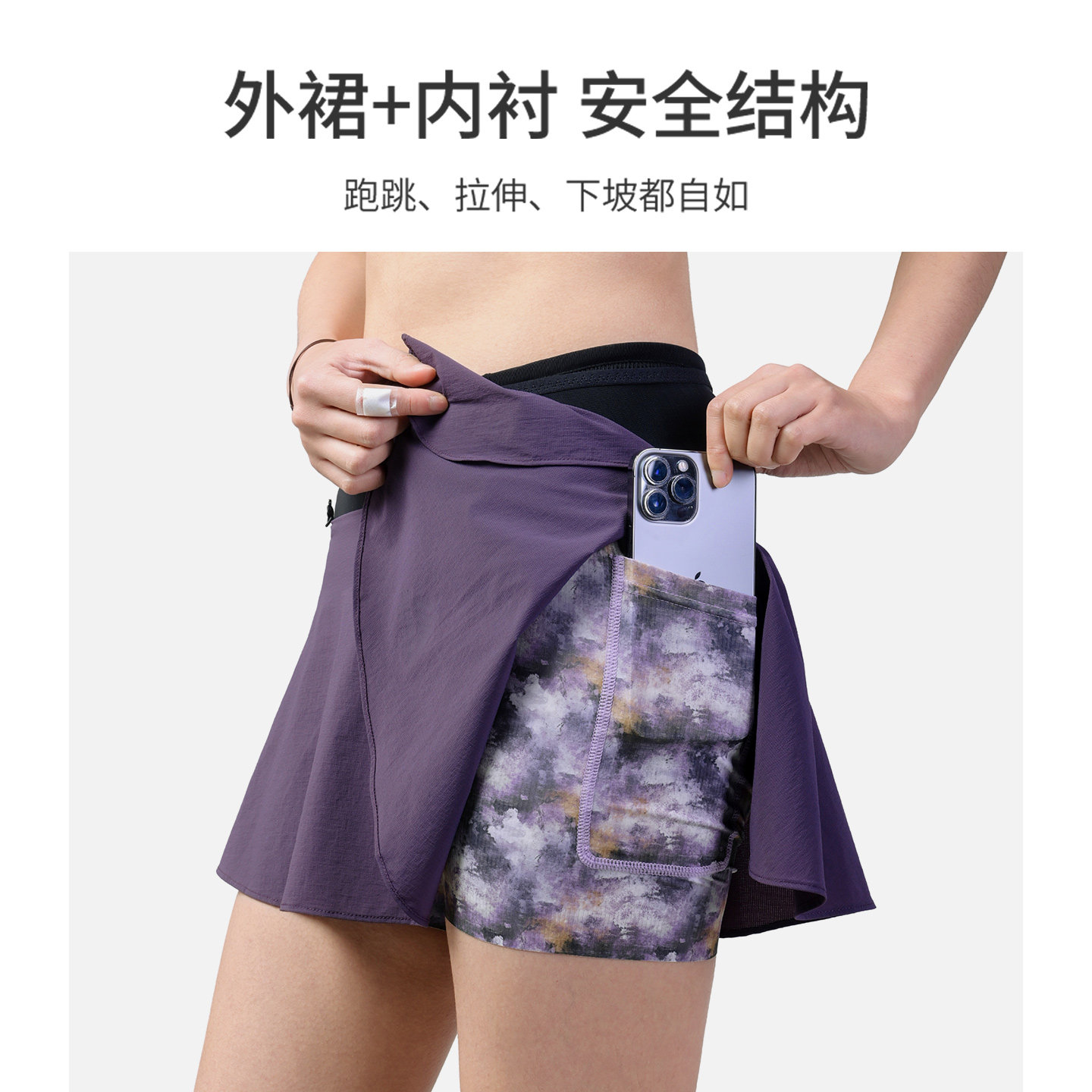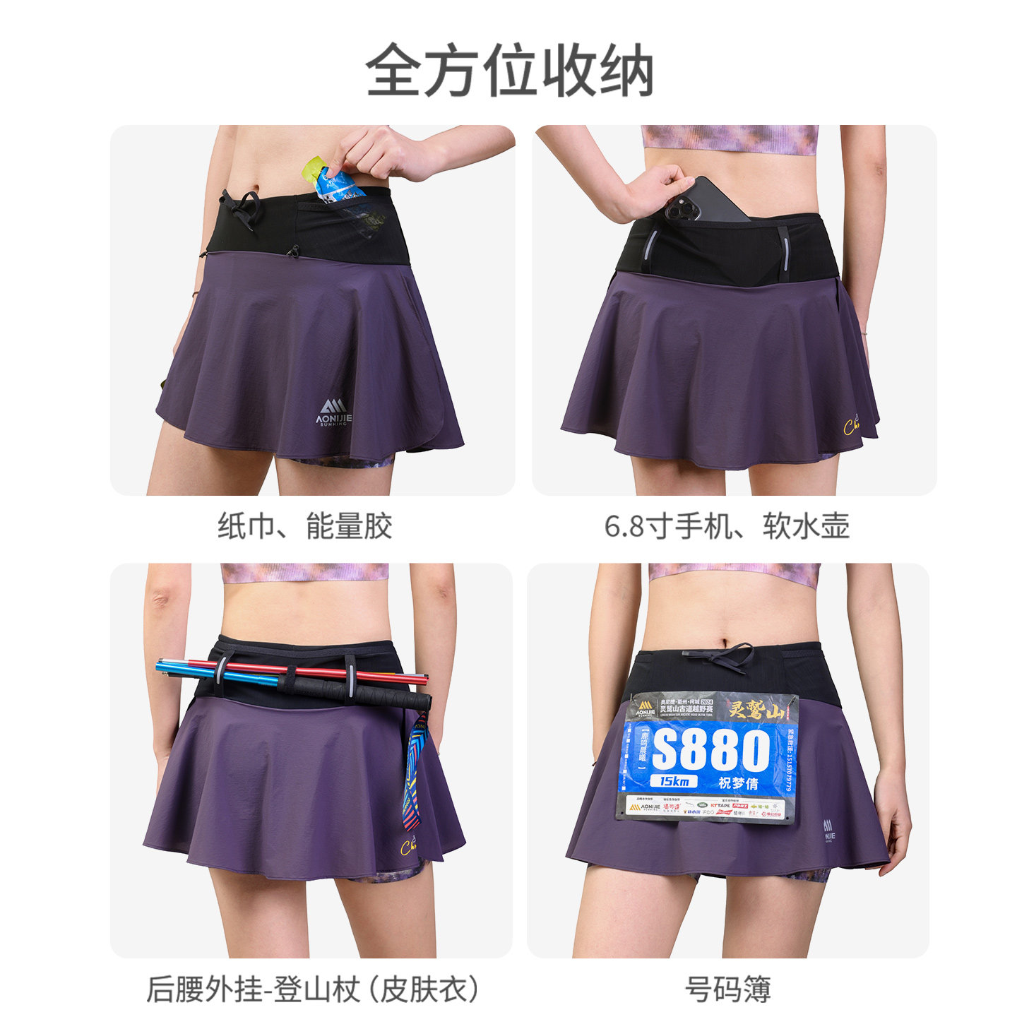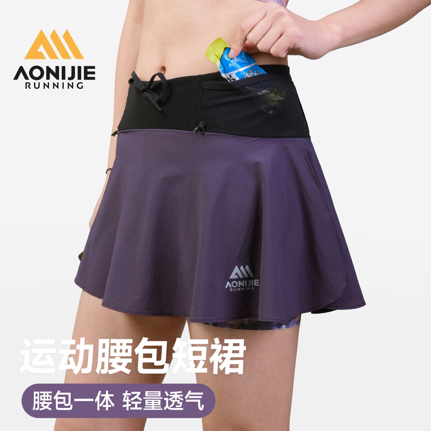 奥尼捷运动短裙女春夏腰包一体速干透气半身裙马拉松越野跑步专用