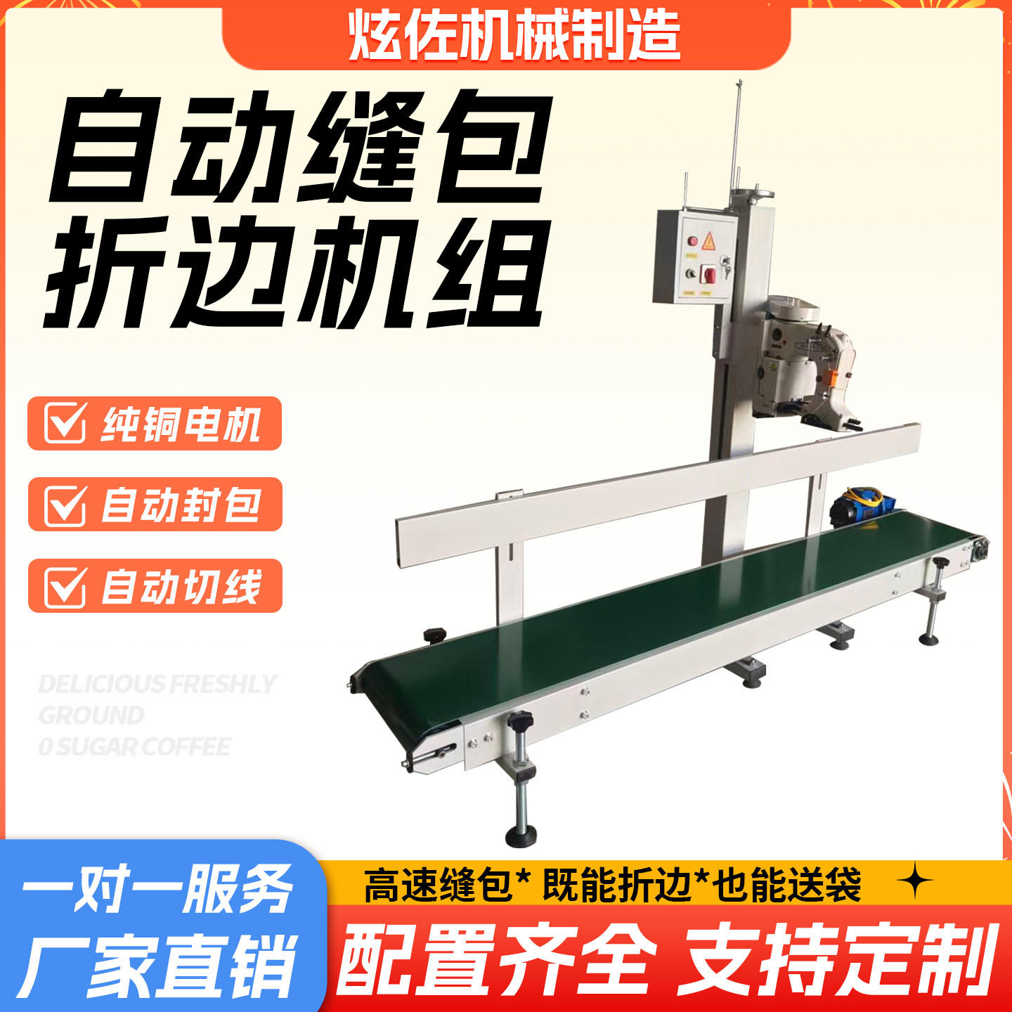 工业缝纫机封口机全自动封包机粮食饲料化肥编织袋折边机牵引机