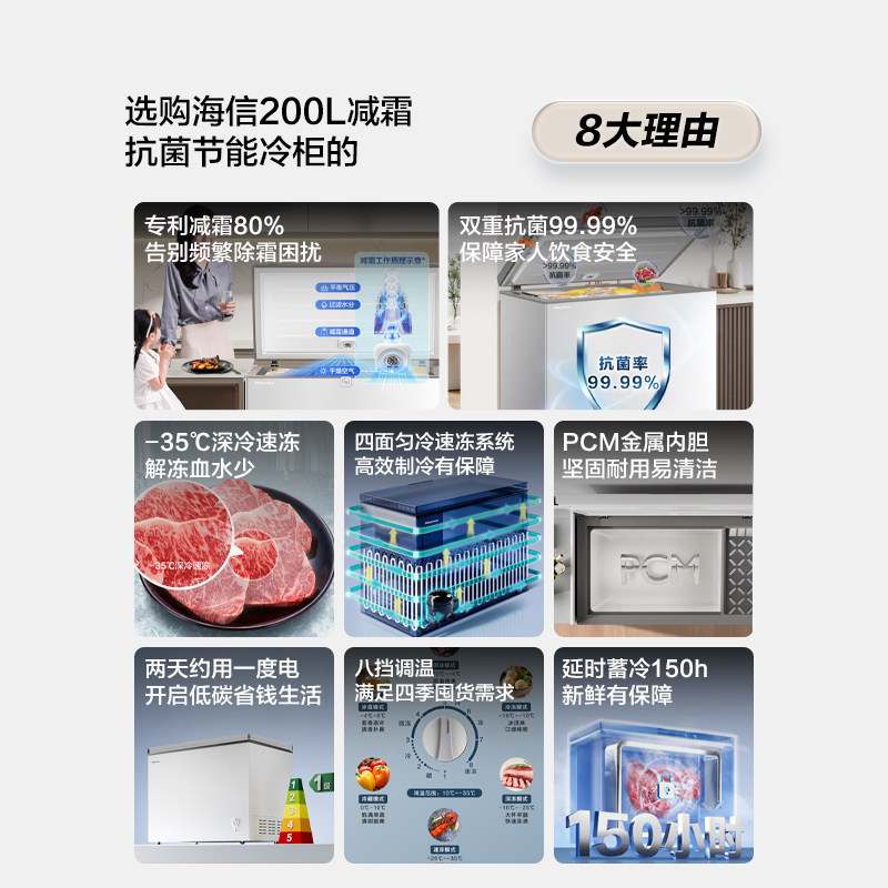 海信200L减霜冰柜家用商用小型冷柜冷藏冷冻转换一级能效卧式冰箱