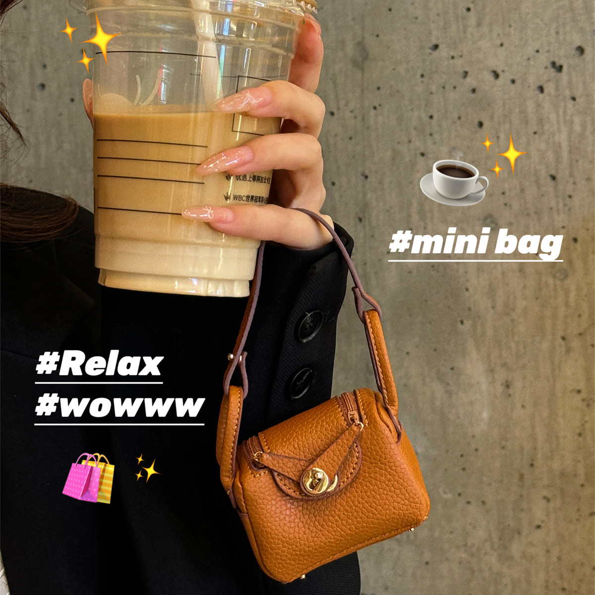 新款潮牌荔枝纹mini手提包挂件适用苹果AirPods pro蓝牙耳机包摆件时尚创意钥匙扣女小众通用零钱包挂饰个性